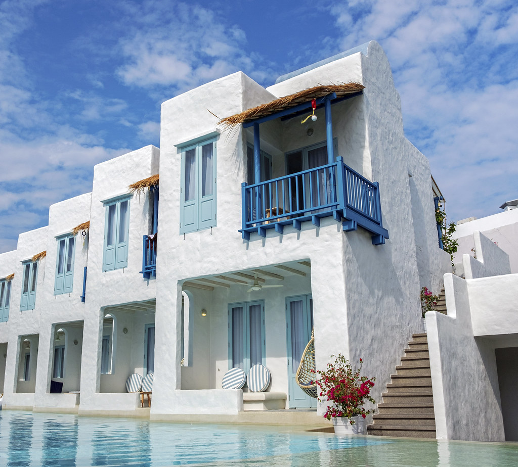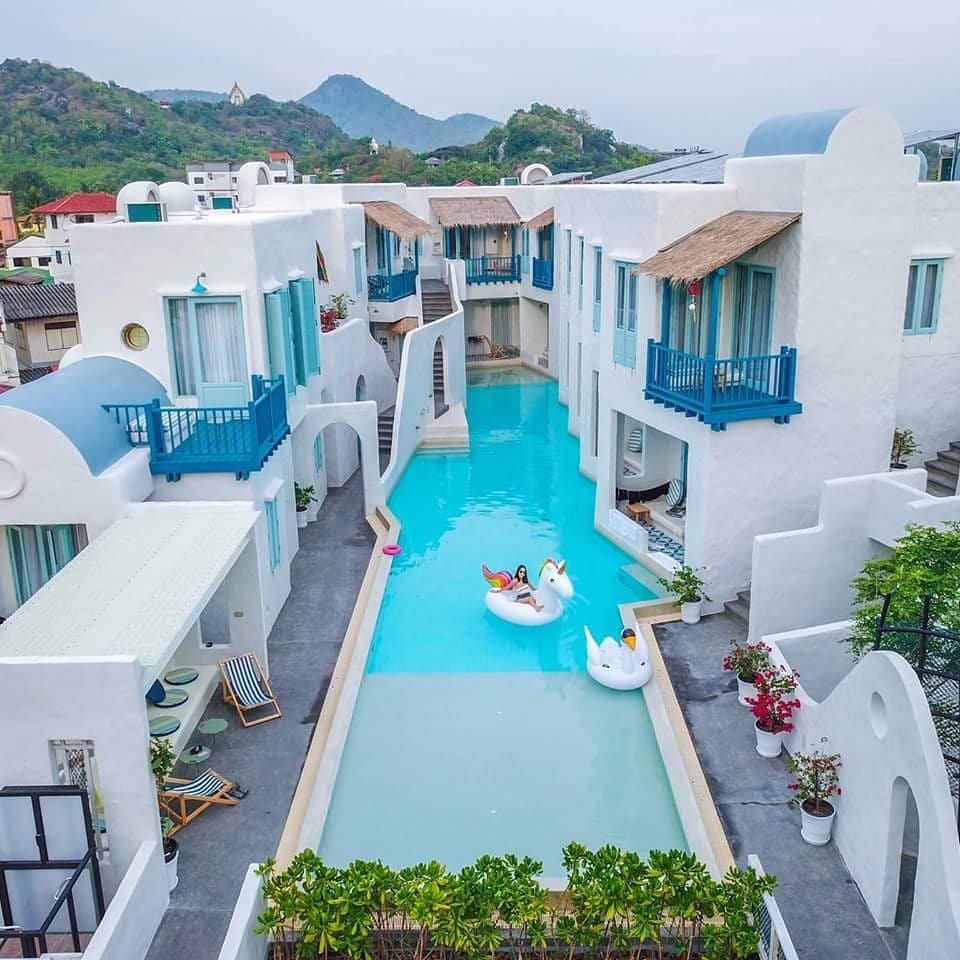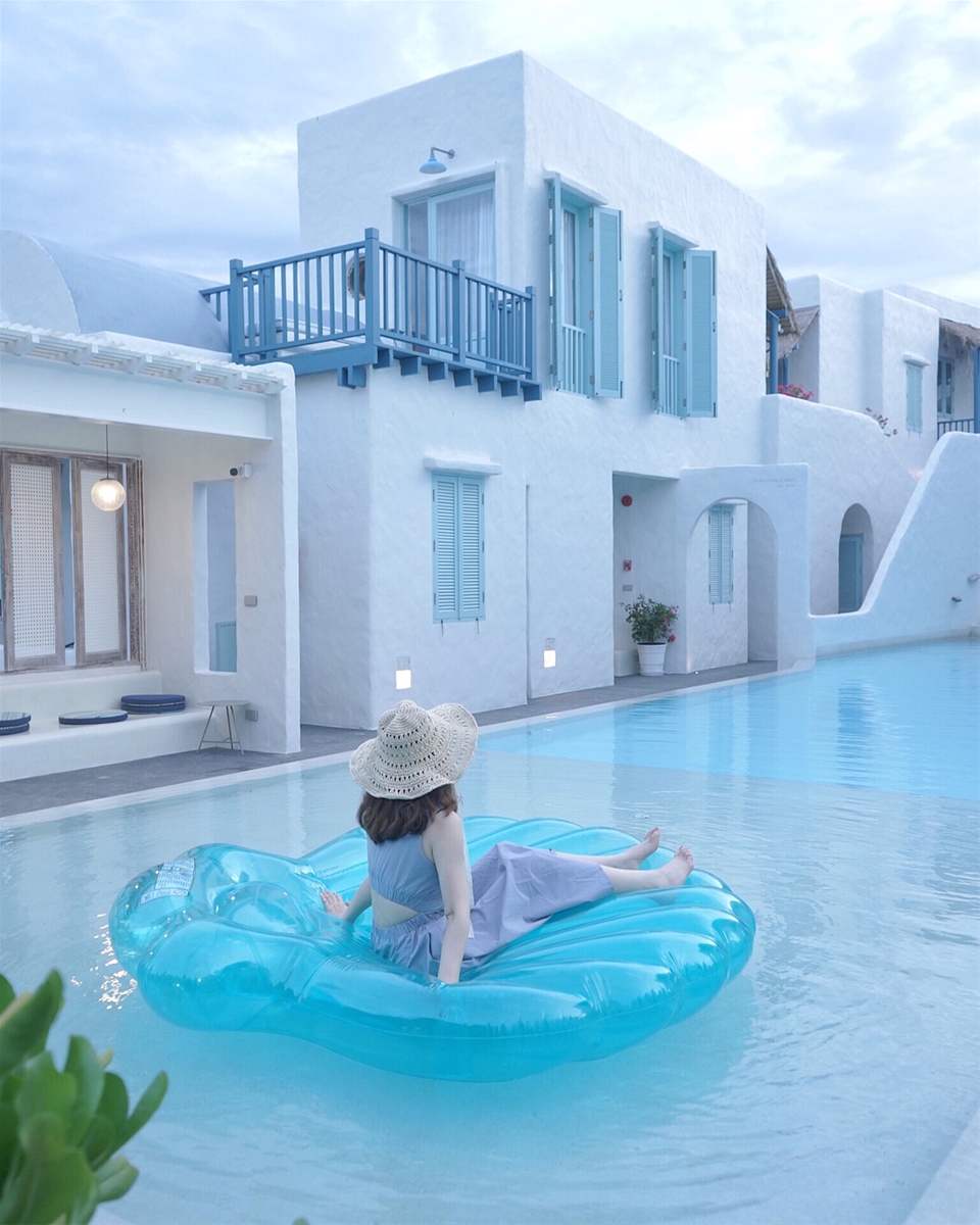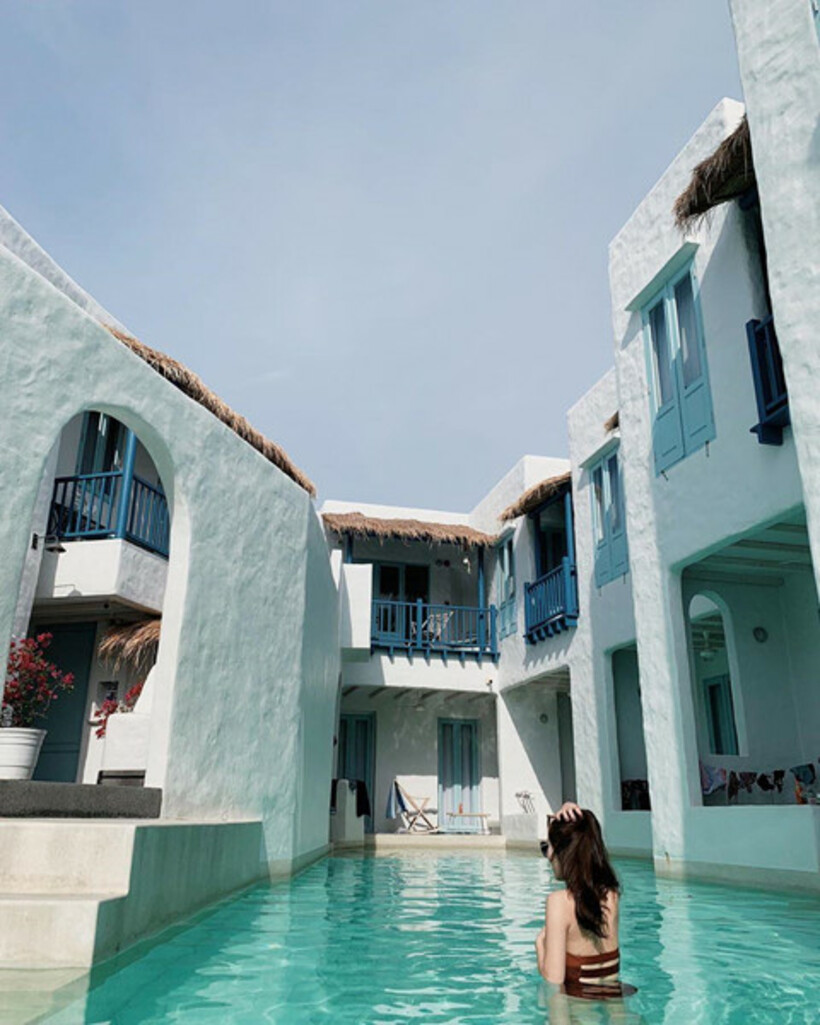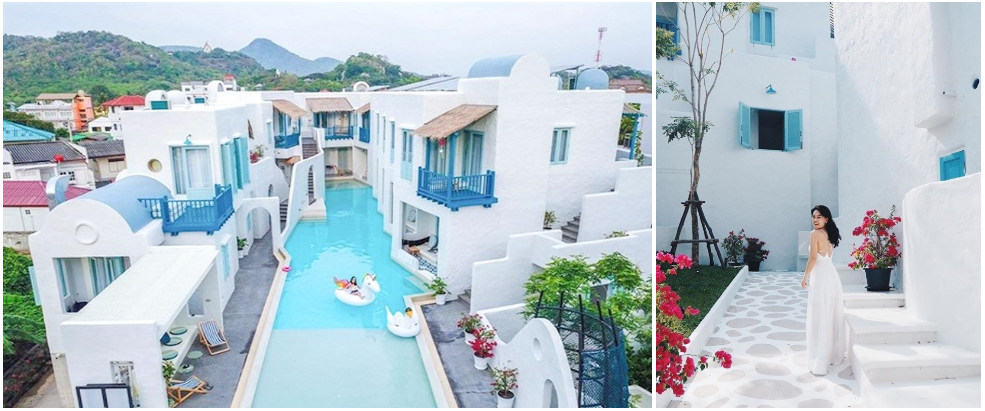 Tone màu chủ đạo của resort là 2 màu xanh - trắng, trông như một "Santorini thu nhỏ" giữa lòng Thái Lan