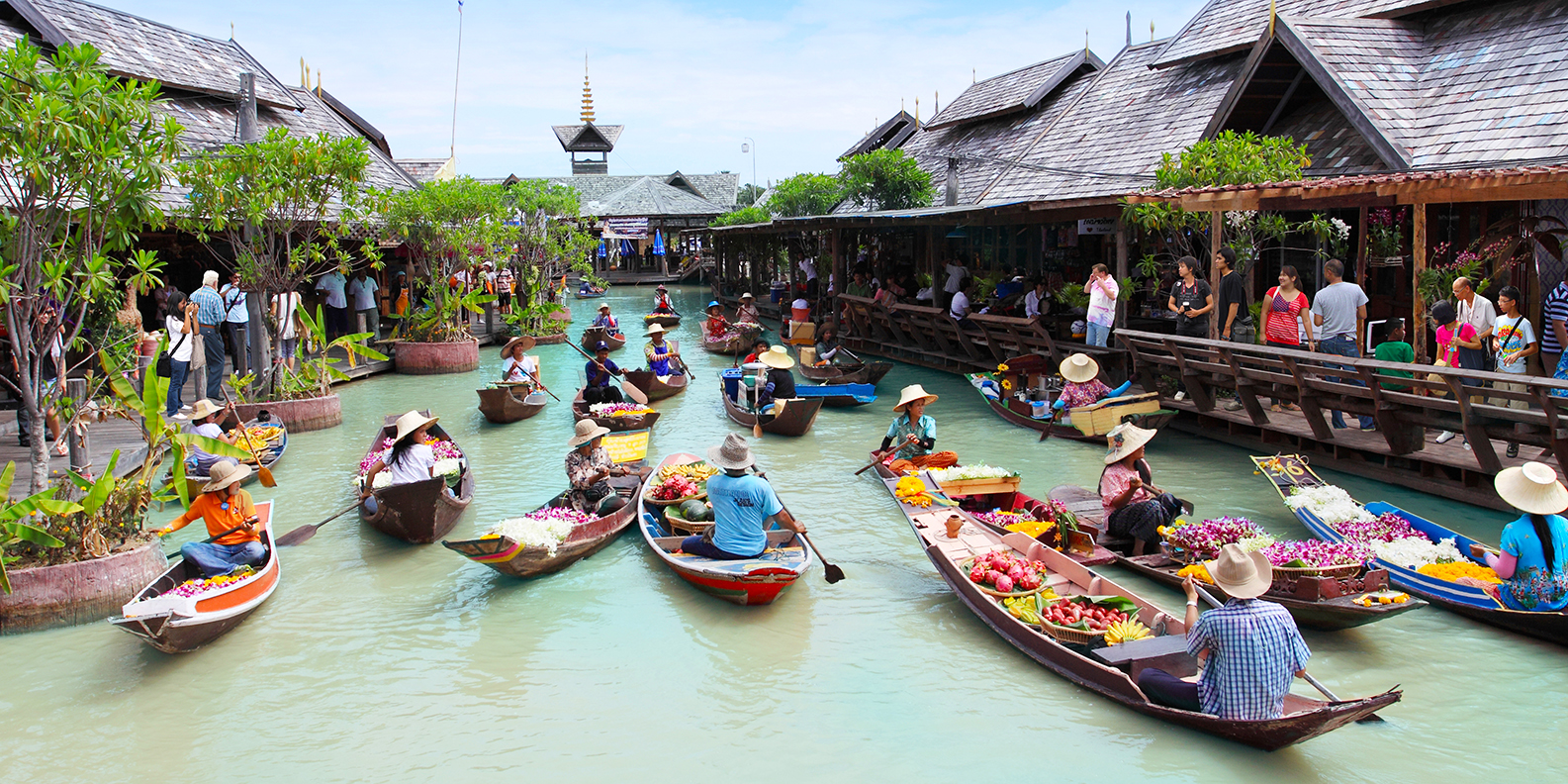 Khi đến với chợ nổi Bốn miền, bạn sẽ thấy liên tiếp các dãy nhà nối tiếp nhau trên mặt nước. Người dân thường bày biện các sản phẩm thủ công, đồ ăn địa phương và các đặc sản của bốn miền: Bắc, Trung, Nam và Đông Bắc của Thái Lan rất bắt mắt. Đặc biệt là gian hàng ẩm thực. Bạn chắc chắn sẽ không thể bỏ qua món Pad Thai, bánh kanom krok (bánh dừa) đậm chất Pattaya. Đừng bỏ qua trải nghiệm di chuyển bằng thuyền len lỏi qua các cây cầu và thưởng thức từng món ngon của chợ nổi này nhé.
