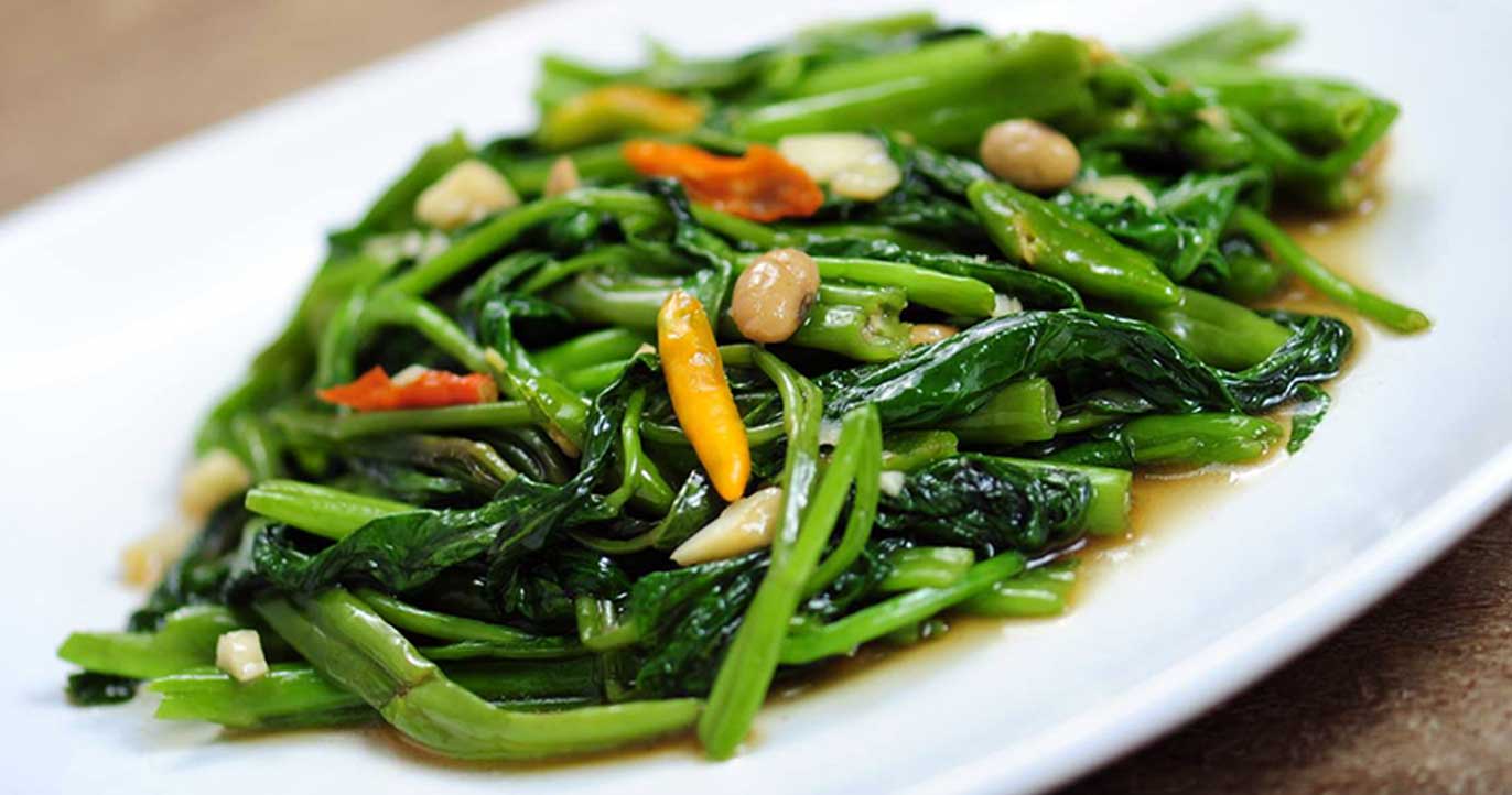 Đây là món rau muống chẻ thân rau, sau đó ngâm nước cho giòn đem xào với tỏi và ớt được gọi là Phad Phak Bung Krob (rau muống chẻ). Khi ăn người ta sẽ cảm nhận được vị giòn của rau, vị thơm nồng của tỏi và cay cay của ớt.