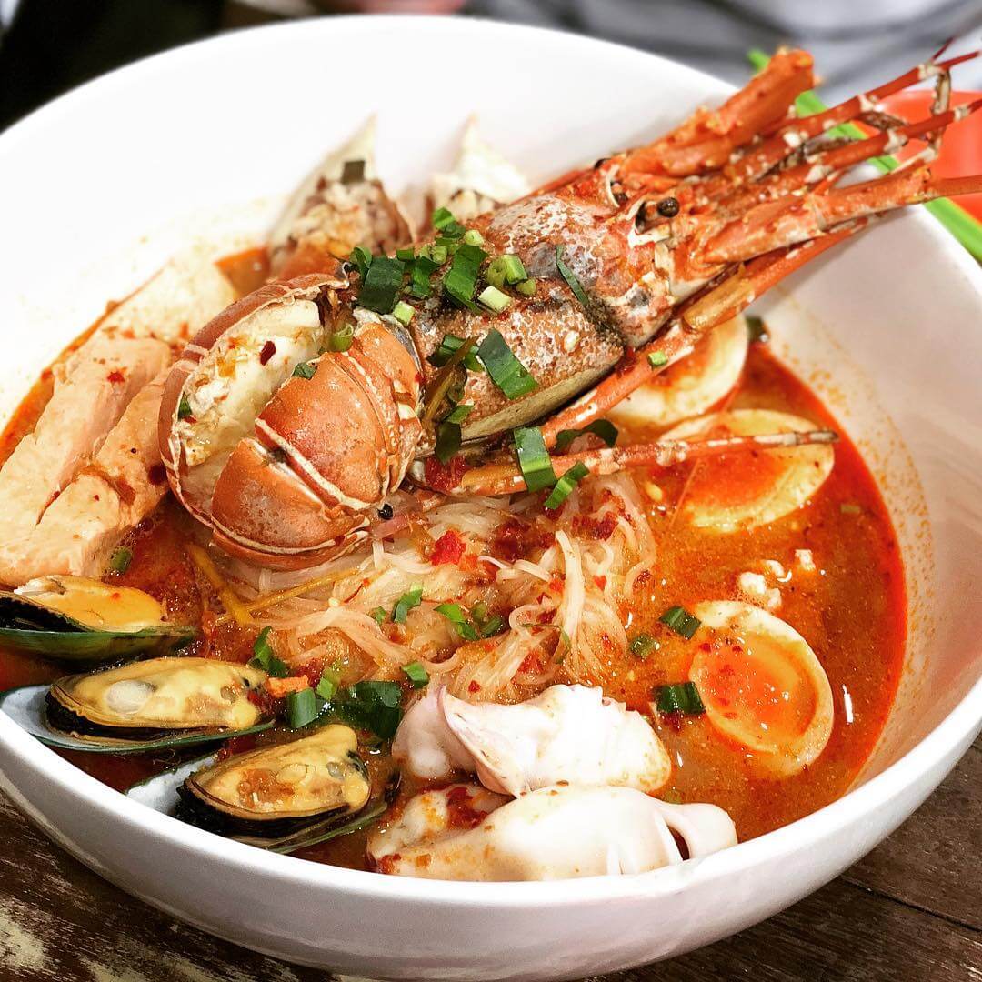 Quán nằm trong khu chợ ẩm thực cực kì nổi tiếng với món mỳ khổng lồ và quán này được coi là một trong những quán có món tomyum ngon nổi tiếng trên đất Thái. Tô “mỳ Tôm” khổng lồ có giá khoảng 1200bath (gần bằng 865k), giá tuy cao nhưng chất lượng thì miễn bàn, trong tô mỳ gồm 1 con tôm hùm, vẹm xanh, cua nhồi thịt, mực, trứng, cá hồi. Các bạn được tự chọn loại mỳ ăn kèm yêu thích, có 5 loại sợi mì để chọn lựa đó nha.